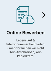 Für Ihre Bewerbung genügt Ihr Lebenslauf mit Kontaktdaten (E-Mail, Telefonnummer). Mehr brauchen wir nicht – wir machen es bewusst einfach.